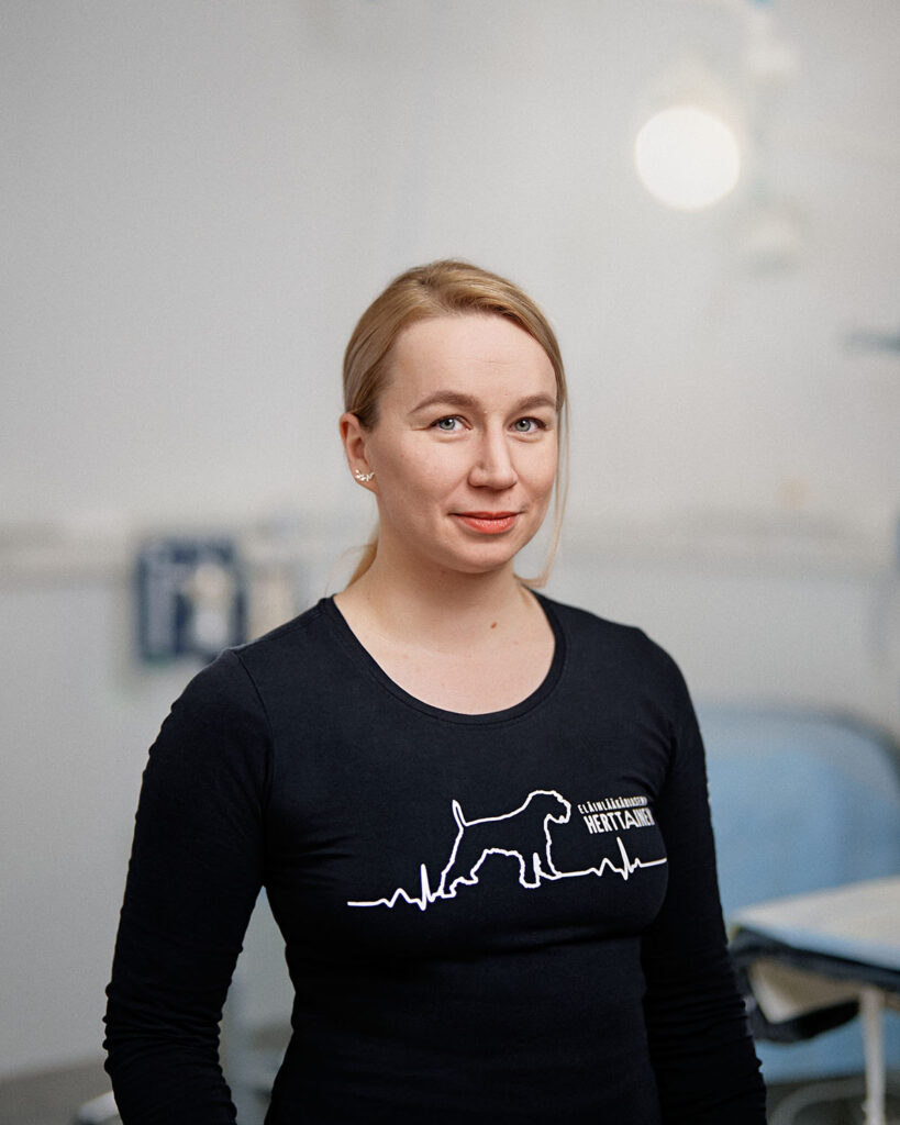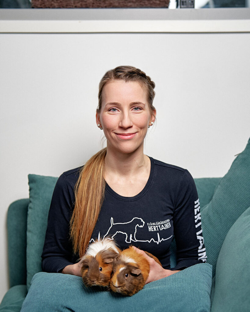 Olen valmistunut eläinlääkäriksi vuonna 2023. Ennen Herttaiseen siirtymistä olen työskennellyt kunnaneläinlääkärinä ympäri Suomea sekä päivystäjänä pieneläinsairaalassa. Olen tehnyt paljon myös eläinlääkärin kotikäyntejä ja erityisesti arkojen lemmikkien hoito kotioloissa on lähellä sydäntä. Minulla on lisäksi homekoiraohjaajan koulutus ja kotoa minulta löytyy labradorinnoutajapojat Vilho ja Urho.