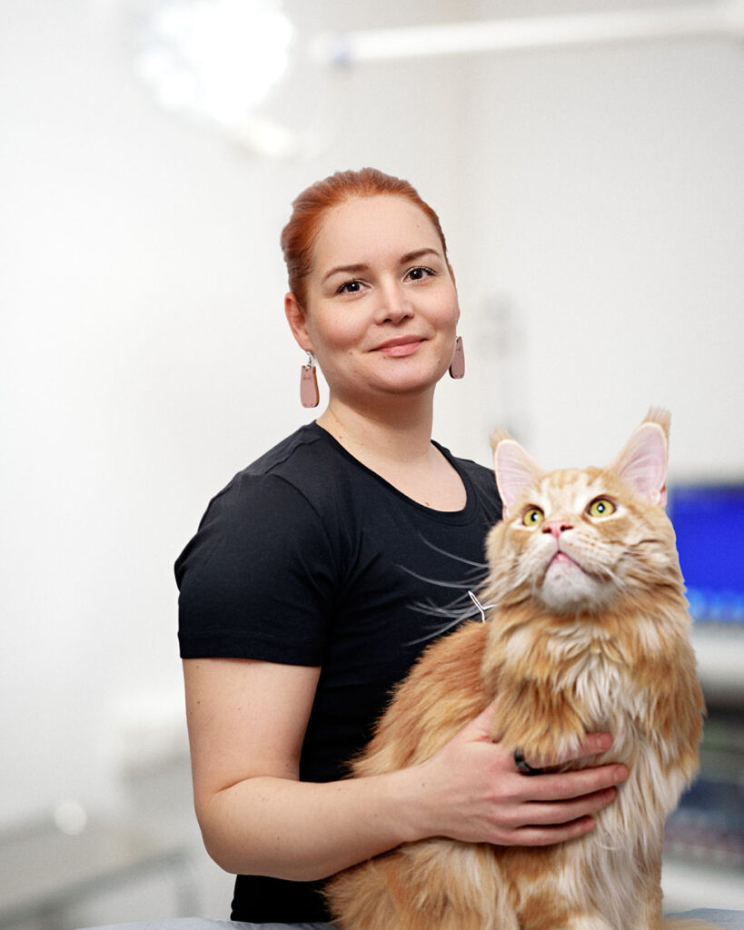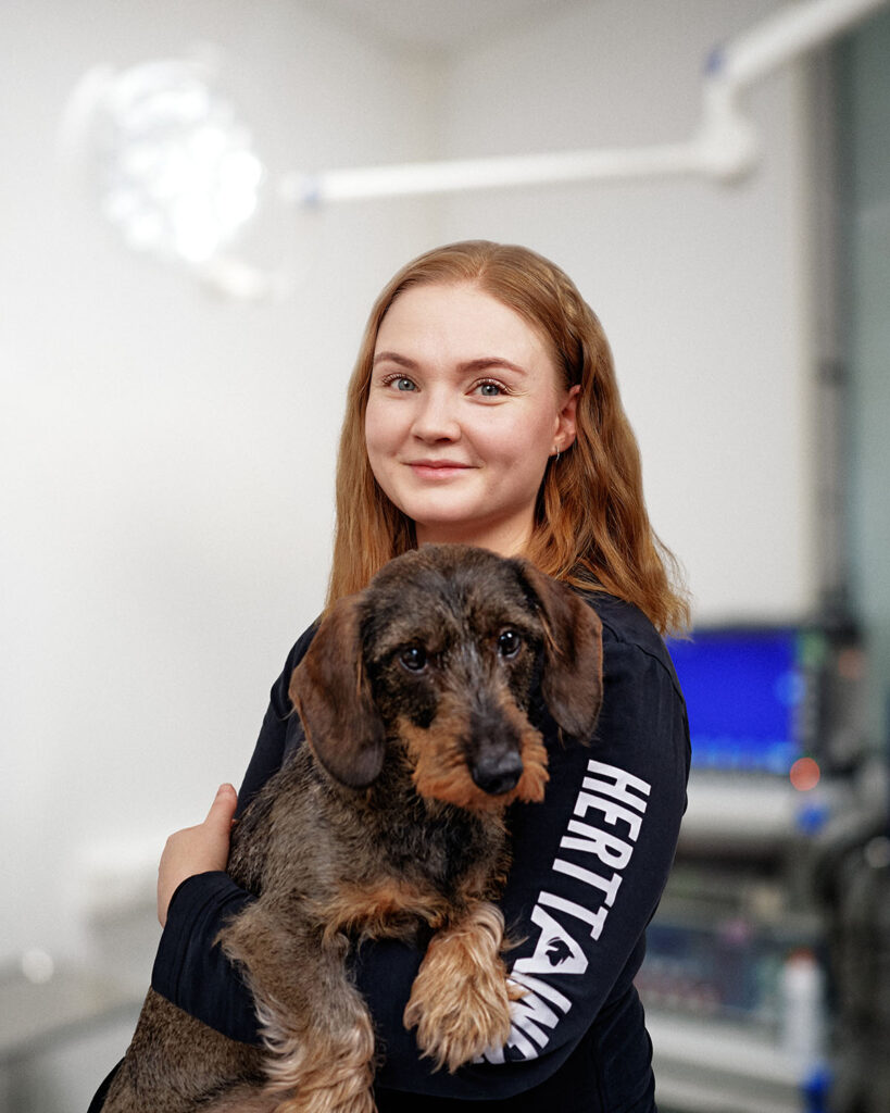 Olen valmistunut eläinlääkäriksi vuonna 2021, ja samana vuonna aloitin työskentelyn Herttaisessa. Hoidan erityisesti sisätauti- ja ihopotilaita ja olen syventänyt osaamistani näihin liittyvillä lisäkoulutuksilla. Vastaanotolla minulle on tärkeää eläimen ja omistajan rauhallinen kohtaaminen sekä eläimen tilanteen huomioiminen kokonaisuutena. Kotoa löytyy kaksi maine coon -kissaa, Eevi ja Leo.