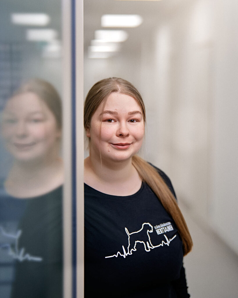 Olen valmistunut klinikkaeläinhoitajaksi vuonna 2021. Parasta hoitajan työssä on päästä työskentelemään eläinten ja eläimistä kiinnostuneiden ihmisten kanssa sekä työn monipuolisuus, joka päivä oppii jotain uutta. Lempityötehtävät klinikalla ovat leikkaussalityöskentely ja hammashoidot.